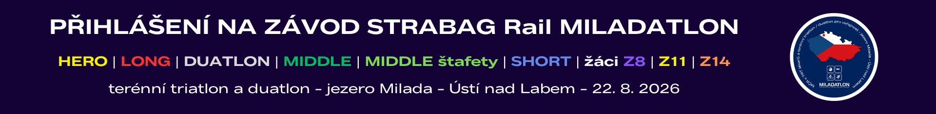 Vyberte kategorii závodu / Select race categoryZ6-8 M do 8 let - 100 KčZ6-8 F do 8 let - 100 KčZ9-11 M do 11 let - 100 KčZ9-11 F do 11 let - 100 KčZ12-14 M do 14 let - 100 KčZ12-14 F do 14 let - 100 KčH -M triatlon hero 18+ let - 1300 KčH -F triatlon hero 18+ let - 1300 KčL18-44 M triatlon long do 44 let - 600 KčL45+ M triatlon long 45+ let - 600 KčL18-44 F triatlon long do 44 let - 600 KčL45+ F triatlon long 45+ let - 600 KčM18-29 M triatlon middle do 29 let - 600 KčM30-39 M triatlon middle do 39 let - 600 KčM40-49 M triatlon middle do 49 let - 600 KčM50+ M triatlon middle 50+ let - 600 KčM18-29 F triatlon middle do 29 let - 600 KčM30-39 F triatlon middle do 39 let - 600 KčM40-49 F triatlon middle do 49 let - 600 KčM50+ F triatlon middle 50+ let - 600 KčMR-štafeta middle 18+ let bez rozdílu pohlaví - 1500 KčDU18-29 M duatlon do 29 let - 600 KčDU30-39 M duatlon do 39 let - 600 KčDU40-49 M duatlon do 49 let - 600 KčDU50+ M duatlon do 50+ let - 600 KčDU18-29 F duatlon do 29 let - 600 KčDU30-39 F duatlon do 39 let - 600 KčDU40-49 F duatlon do 49 let - 600 KčDU50+ F duatlon do 50+ let - 600 KčS15-17 M triatlon short do 17 let - 600 KčS18-29 M triatlon short do 29 let - 600 KčS30-39 M triatlon short do 39 let - 600 KčS40-49 M triatlon short do 49 let - 600 KčS50-59 M triatlon short do 59 let - 600 KčS60+ M triatlon short 60+ let - 600 KčS15-17 F triatlon short do 17 let - 600 KčS18-29 F triatlon short do 29 let - 600 KčS30-39 F triatlon short do 39 let - 600 KčS40-49 F triatlon short do 49 let - 600 KčS50-59 F triatlon short do 59 let - 600 KčS60+ F triatlon short 60+ let - 600 Kč